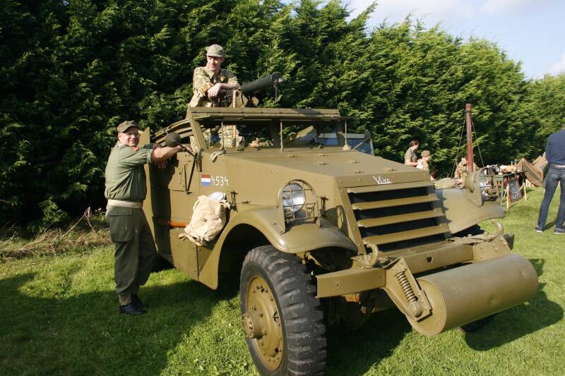 Een groot deel van het display werd ook ingenomen door een van onze leden zijn nieuwste voertuig aanwinst, een heuse Amerikaanse M3A1 White Scoutcar.